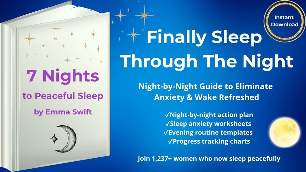Stop 3AM anxiety wake-ups in 7 nights. Includes 30-day tracker, emergency bedside card & proven techniques. 1,247+ sleeping better. $27 (30-day guarantee)